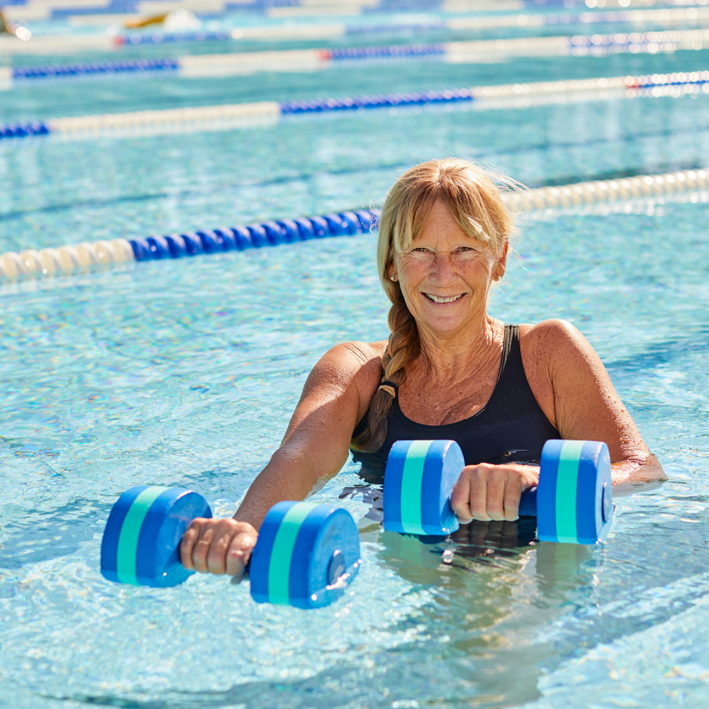 It's water based low impact workout that helps you improving your cardiovascular resistance, balance and strength in an enjoyable atmosphere with music in our 25m outdoor heated pool.